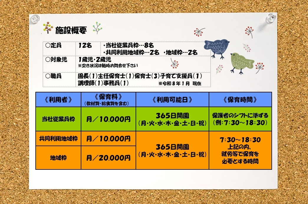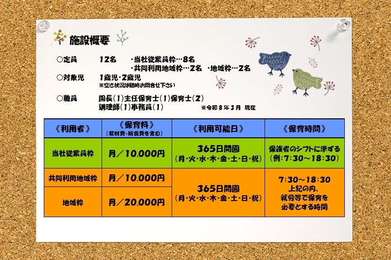 決定しておりますので、地域枠弊社以外で働く方)のお子様の受入れも行っております。